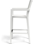 The Naples Sling Barstool is crafted with a fully welded, scratch-resistant frame and non-marking plastic glides, ensuring stability and protection for your floors. Its weather-resistant, tear-resistant materials are tailored to endure varied outdoor conditions, making it a reliable choice for both residential and commercial use. It is part of the Frost color story and coordinates well with accompanying pieces like Newport, Regatta, and Carrara, offering a cohesive look to your outdoor space.