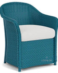 This plantation-style outdoor DINING ARM CHAIR from the Lloyd Loom collection is showing in Peacock Finish and Canvas Natural all-weather Fabric. This made-in-America outdoor furniture comes with a satisfaction guaranteed promise and a favorable long-term warranty. Make your own patio furniture with 20 rust-resistant wicker finishes and an extensive selection of fade-resistant, mildew-resistant, and water-repellent fabrics. Featuring exceptional seating comfort and resilience, inherently mildew/bacteria resistant components, and the security of knowing that Comfort Plush Premium Outdoor Seating System is an environmentally friendly product.