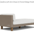 This high-quality outdoor LEFT ARM CHAISE, part of the Catalina collection from Lloyd Loom, showcases a beautiful Mink Finish and durable Canvas Natural all-weather fabric. This made-in-America seating exudes sophistication with its plush cushions and long-lasting wicker and teak wood accents. Designed with clean lines and comfortable seating, the Catalina collection captures the laid-back vibes of its island inspiration. Featuring iconic Lloyd Loom paired with FSC-certified teak in an antique gray finish, this seating is both stylish and durable. The Lloyd Loom wicker, woven over aluminum frames, is guaranteed to withstand the elements without cracking or peeling and can be customized with a variety of color options. With 20 rust-resistant finishes and a wide selection of fade-resistant, mildew-resistant, and water-repellent fabrics, you can create your own personalized patio furniture. This seating also boasts exceptional comfort and resilience, as well as inherent resistance to mildew and bacteria.